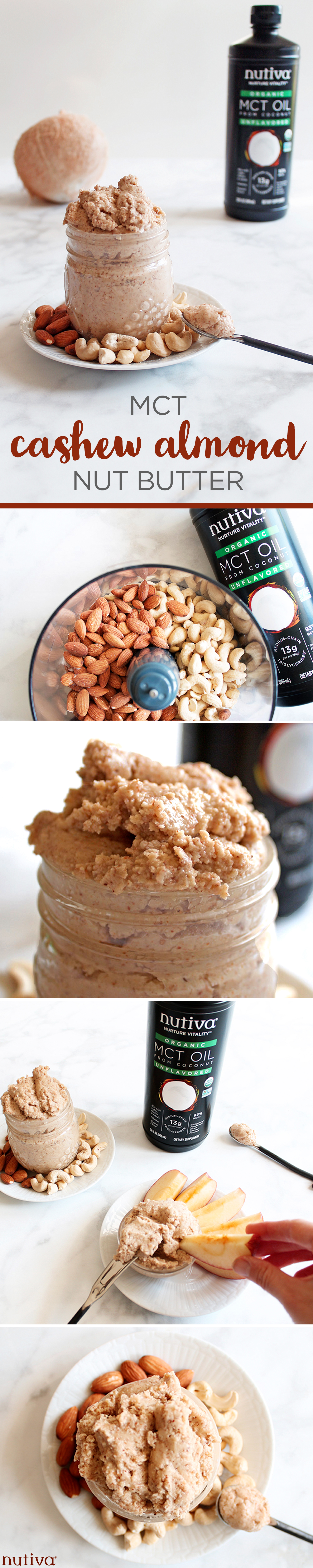 Once you make this MCT Cashew Almond Nut Butter, you can pair with your favorite fruit like an apple or banana.